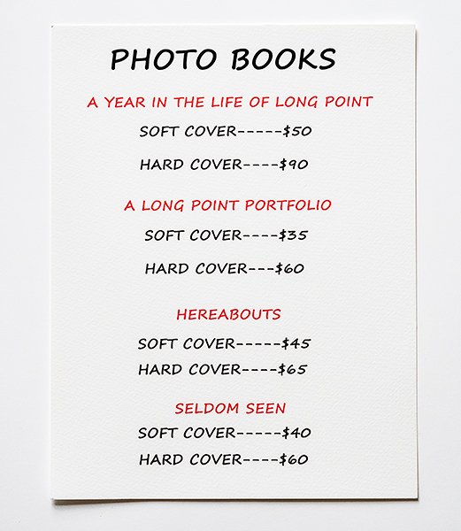 Their self published books of Norfolk County and Long Point are available for purchase. Inquiries and orders can be made via www.RaraAvisPhotos.com or by e-mail at raraavis.pix@gmail.com.