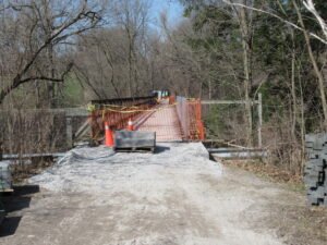 The bridge repairs being done between Ireland Road and Decou Road are now complete, and the Trail is open for business!